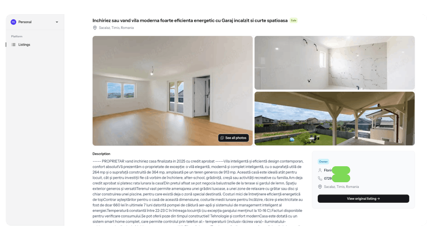 We used to spend hours every morning browsing multiple sites. Now all owner listings are in one dashboard — it saves us at least two hours a day.
